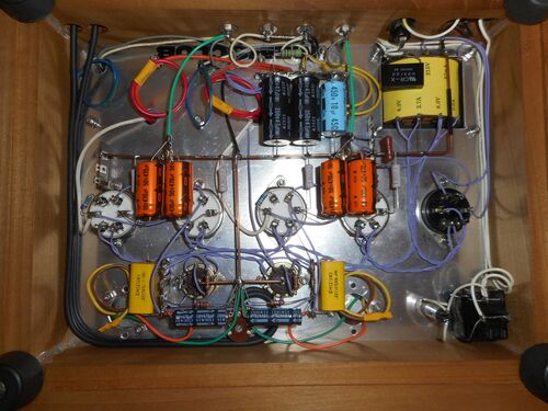 完成からカップリングコンの容量を減らしたりと少し回路定数を変えずっと試聴を続けていますが、結構低音域も豊かに3極管らしい音で鳴っておりイイ感じです。最大出力も計算上(600mW)思っていたよりは出ておりグリッドチョークの効果が出ているようです。…
