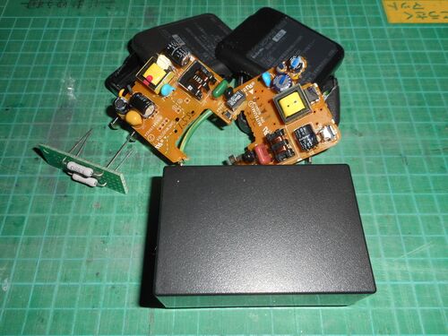 12Aのフィラメント点灯は要らなくなったガラ携用充電器を利用しますが、タカチのプラボックスに丁度良いサイズが有ったのでバラした基板2個は2階建てにして納めました。充電器の電圧が5.6Vと少し高いので比較回路を弄って5Vにする心算でしたが、実験中に変な…